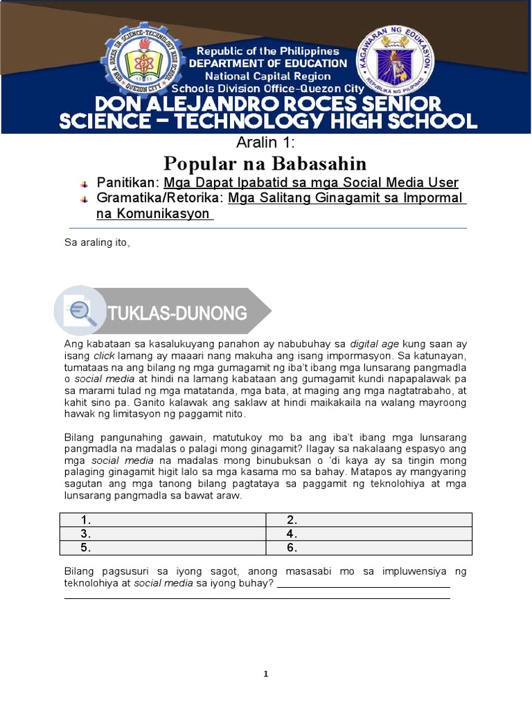 Aralin 1 Mga Popular Na Babasahin Pangkat 1 Filipino Facebook