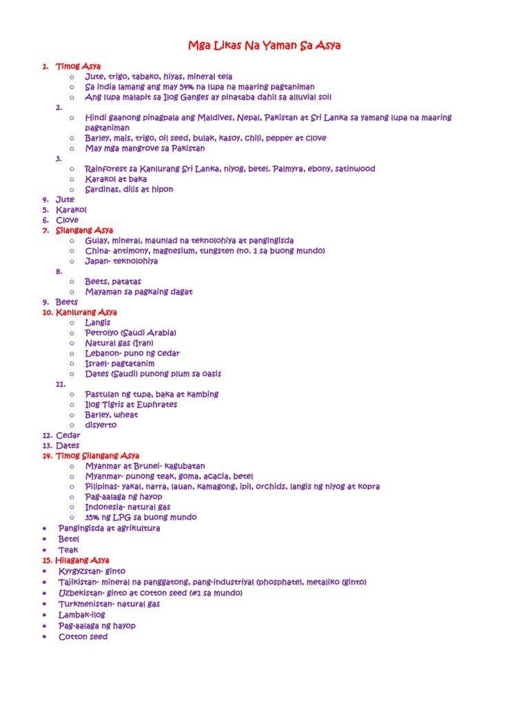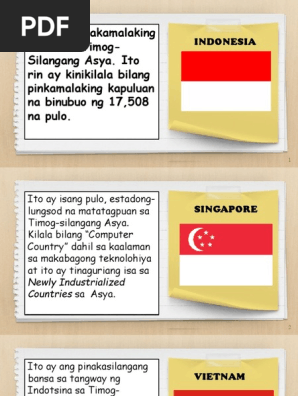 Masusuri ang proseso ng pagbangon ng damdaming nasyonalismo sa Asya. IMPLIKASYON NG PISIKAL NA KATANGIAN AT LIKAS NA YAMAN NG TIMOG-SILANGANG ASYA 24. Ang Silangang Asya ay isa sa mga rehiyon ng Asya na maaaring tumukoy sa paraang heograpikal o kultural.