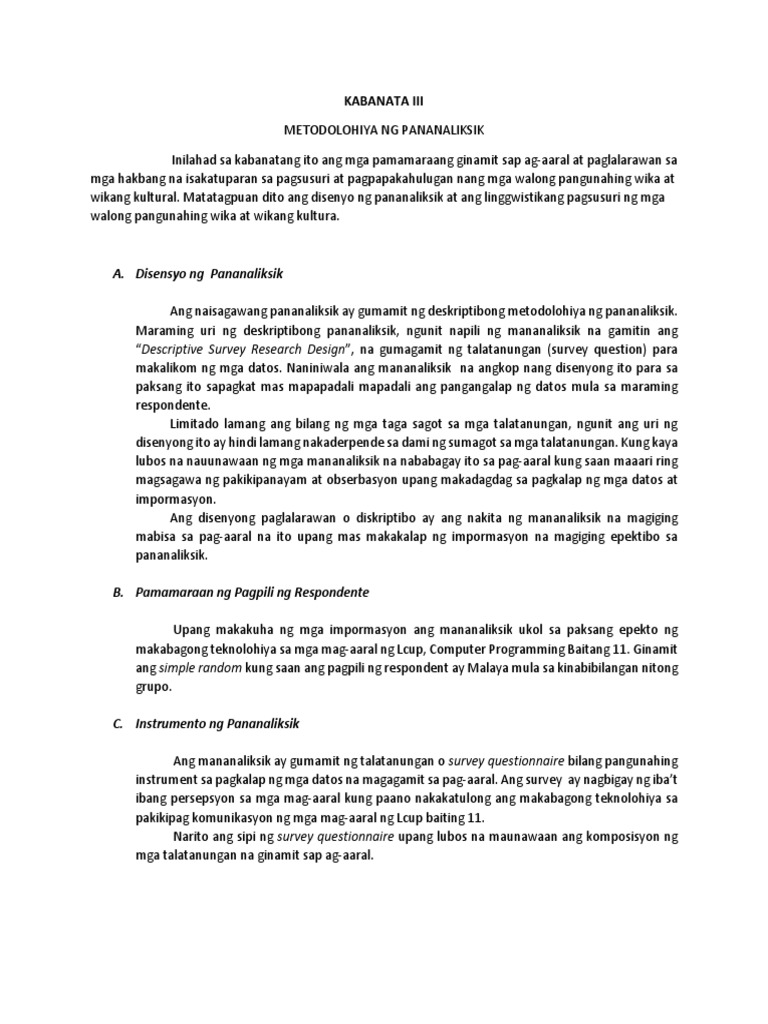 Kabanata Iii Docx Kabanata Iii I Disenyo Ng Pananaliksik Ang Pananaliksik Na Ito Ay Ginamit Ng Deskriptibong Paraan Ng Paglalahad Dahil Nga Sa Itoy Course Hero