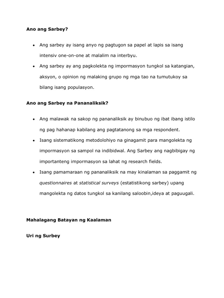 16092016 Survey Isa sa mga stratehiya na ginamit sa pananaliksik na ito ay ang pagsasarbeyAng pagsasarbey ay ginawa gamit ang pagbibigay ng mga questionnaire sa mga piling estudyante sa Mater Ecclessiae School. Thesis Tungkol Sa. Sinulat ito ni Jan Cybell M.