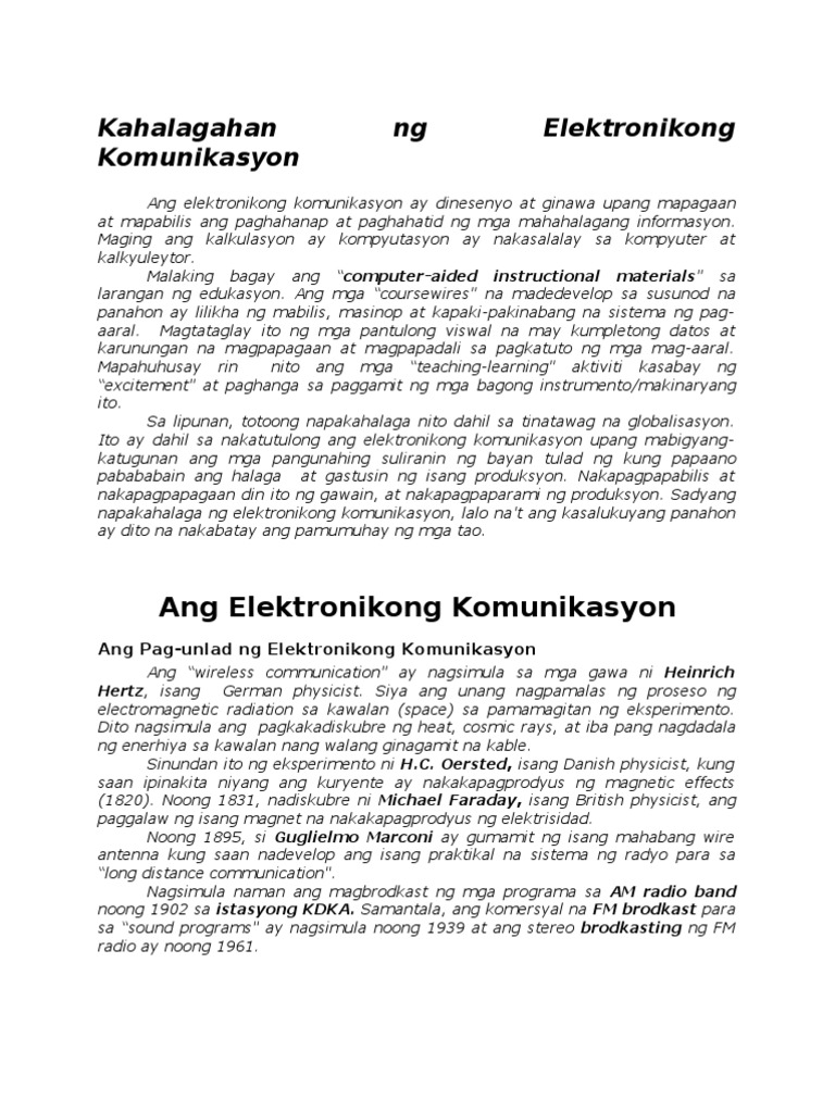 Kahalagahan ng teknolohiya sa komunikasyon. Natutukoy ang ibat ibang kagamitan ng komunikasyon. Ang pag-aaral na ito ay nagbibigay benepisyo at epekto sa kadahilanang mapapabilis nito at mapapadali ang komunikasyon sa kanilang mga anak na pasok sa eskwelahan. Natutukoy ang mga katangian ng mga produkto ng modernong teknolohiya.