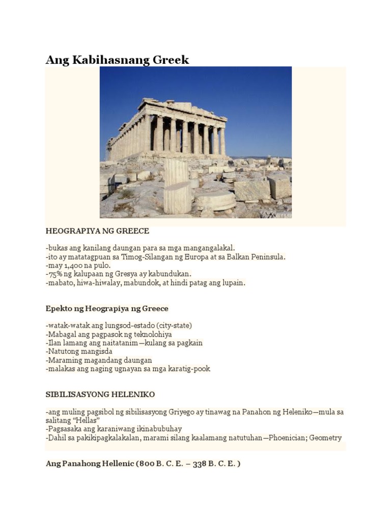 Sa teknolohiya karamihan sa panahon ng kasaysayan hanggang sa oras na iyon. Sa huling bahagi ng forum gumawa ng repliksyon ung paano nauugnay ng likas na yaman. K A B I H A S N A N G G R E E C E POLITIKA Monarkiya pinamumunuan ng Hari o Reyna Aristokrasya pinakamahuhusay na mga maharlika Demokrasya pamahalaan ng mga tao o mamamayan.
