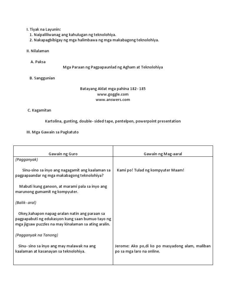 Agwat teknolohikal lesson plan. Modyul para sa Mag-aaral Agwat Teknolohikal. Make it fair. View LESSON PLAN 10docx from AA 1Aralin 2.