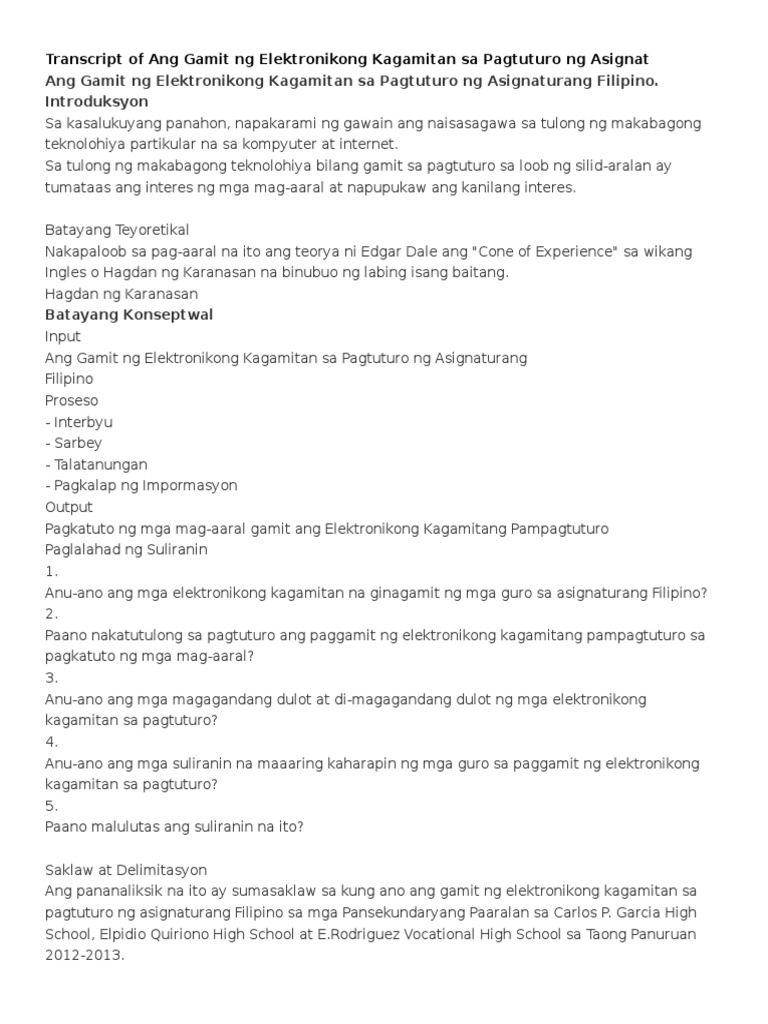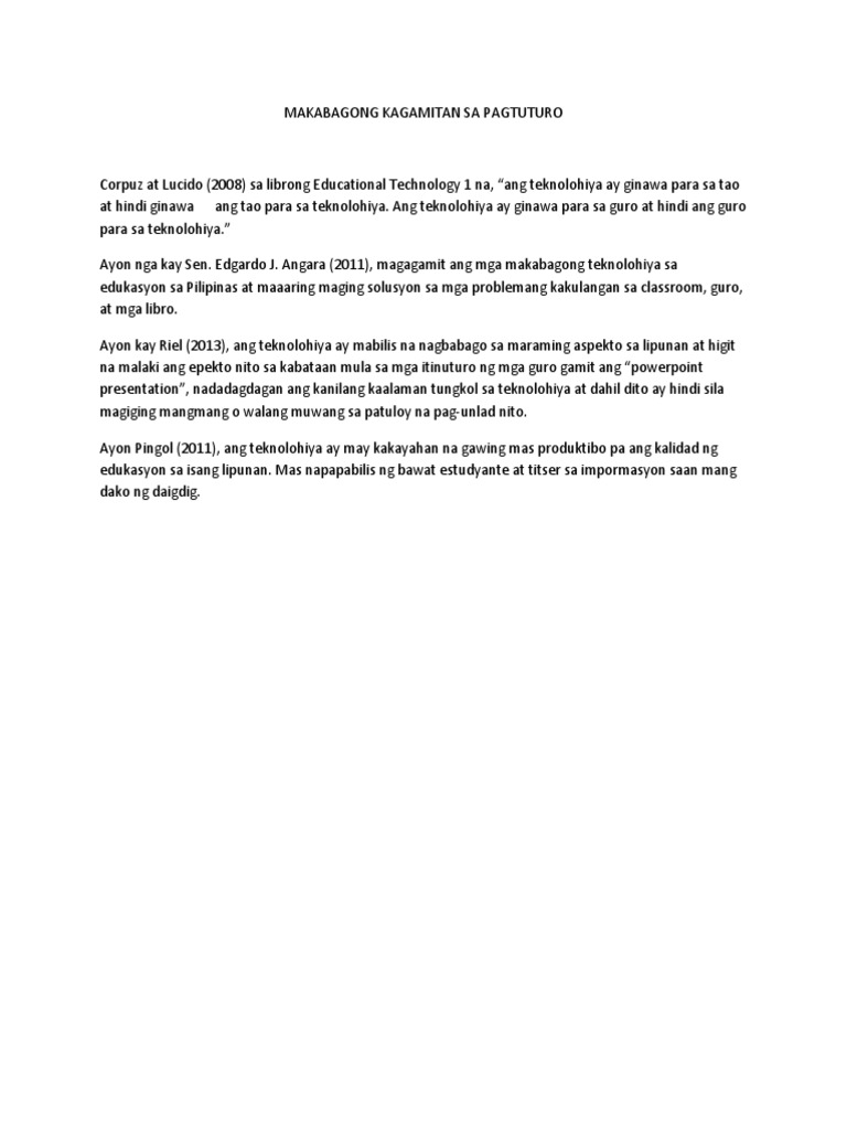 1362020 magiging maganda ang epekto ng mga makabagong kagamitan sa pagtuturo dahil mapupunan nito ang mga kakulangang matagal nang hinaharap ng edukasyon sa bansa. I used to wonder how a company can service Thesis Sa Filipino 2 Tungkol Sa Makabagong Teknolohiya an essay help so well that it earns such rave reviews from every other student. 12 Jun 2019 Thanks for your help.