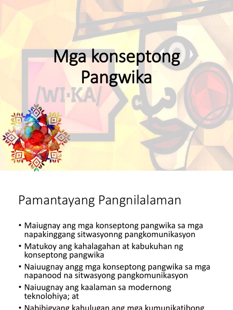 Modernong teknolohiya sa konseptong pangwika. Nabibigyang kahulugan ang mga komunikatibong gamit ng wika sa lipunan ayon kay m. View KONSEPTONG-PANGWIKA-FINALpdf from FILIPINO 12 at Siena College of Quezon City. Paano magagamit ang kaalaman sa modernong teknolohiya sa pag unawa sa mga konseptong pangwika.